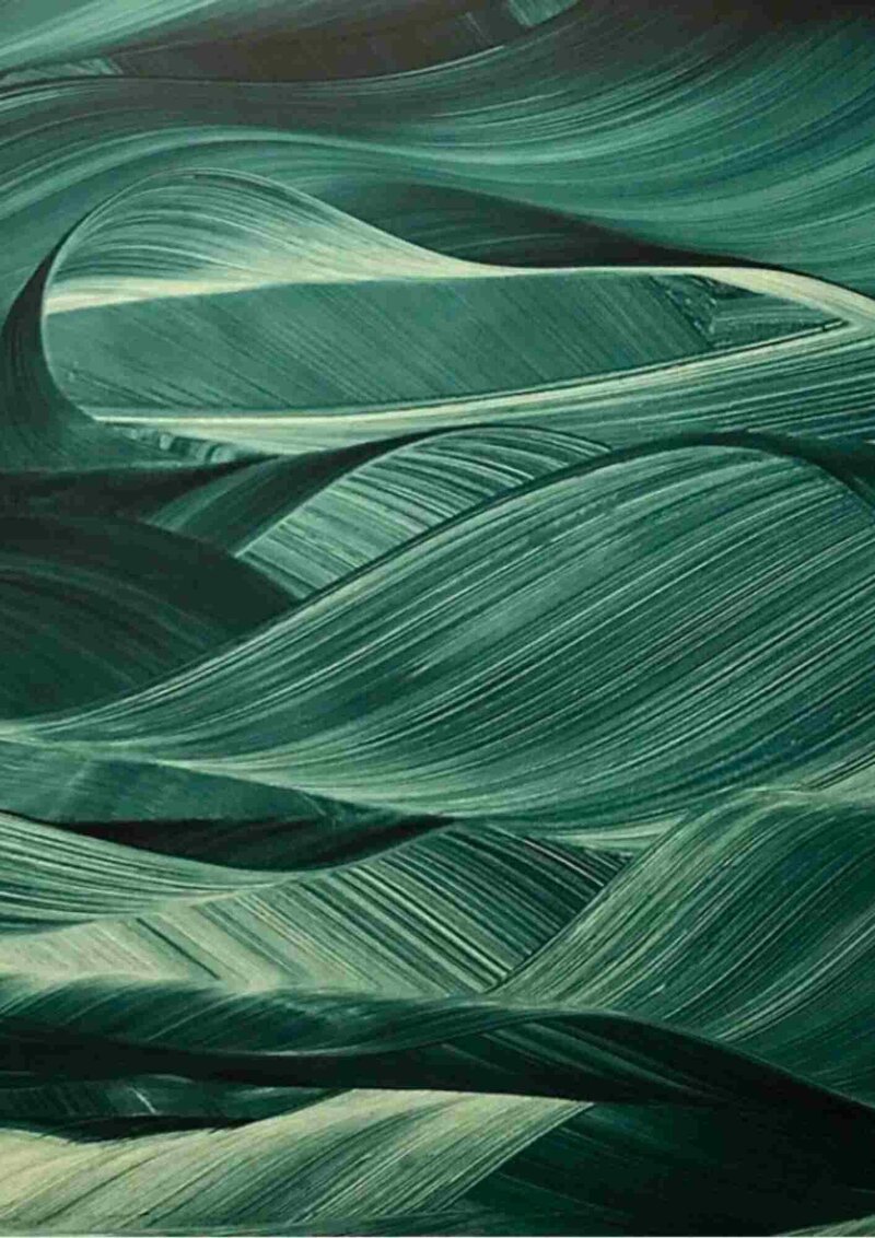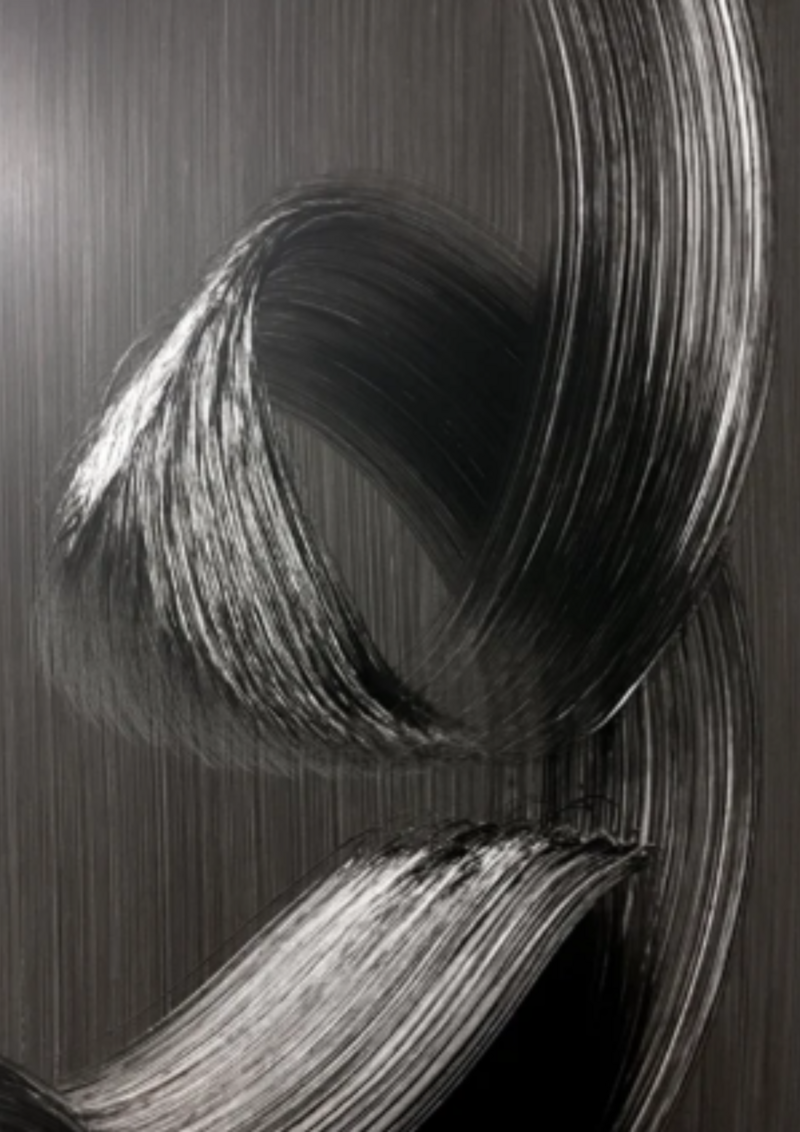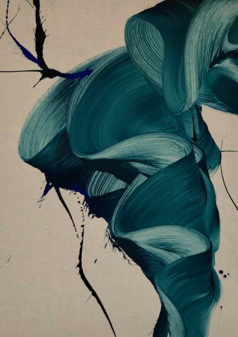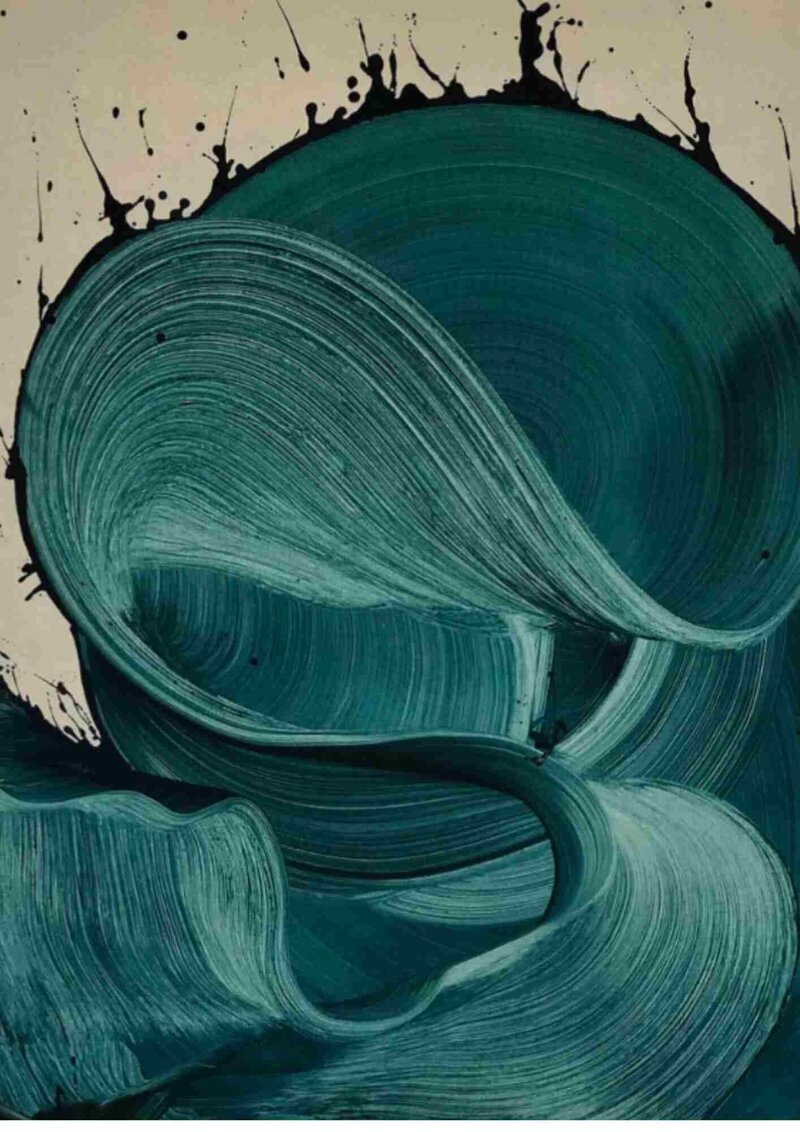 His paintings on the other hand look inwards and have a constant flow and movement. They are a result of a visceral and physical process, which comes from a place where thought, judgment and expectations do not matter.