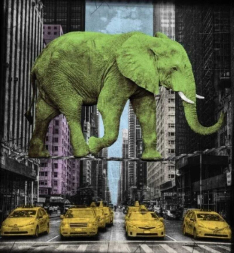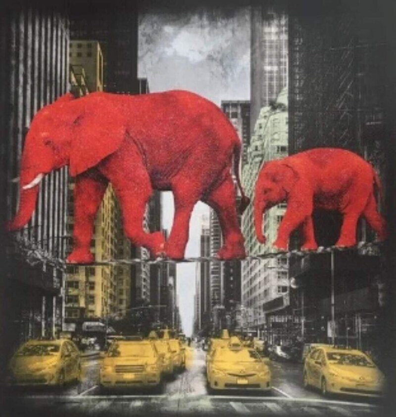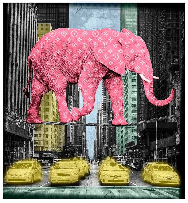 He is mostly known for his photo-montages of animals in unusual situations including elephants on tightropes in New York City and balancing on their heads in London. Images are worked with different effects and filters in multiple layers and then hand-finished with clear transparent colours and individual effects. Tunebo’s sense of humor, wittiness and imagination allow him to create images that constantly surprise and amaze and give laughter and joy.