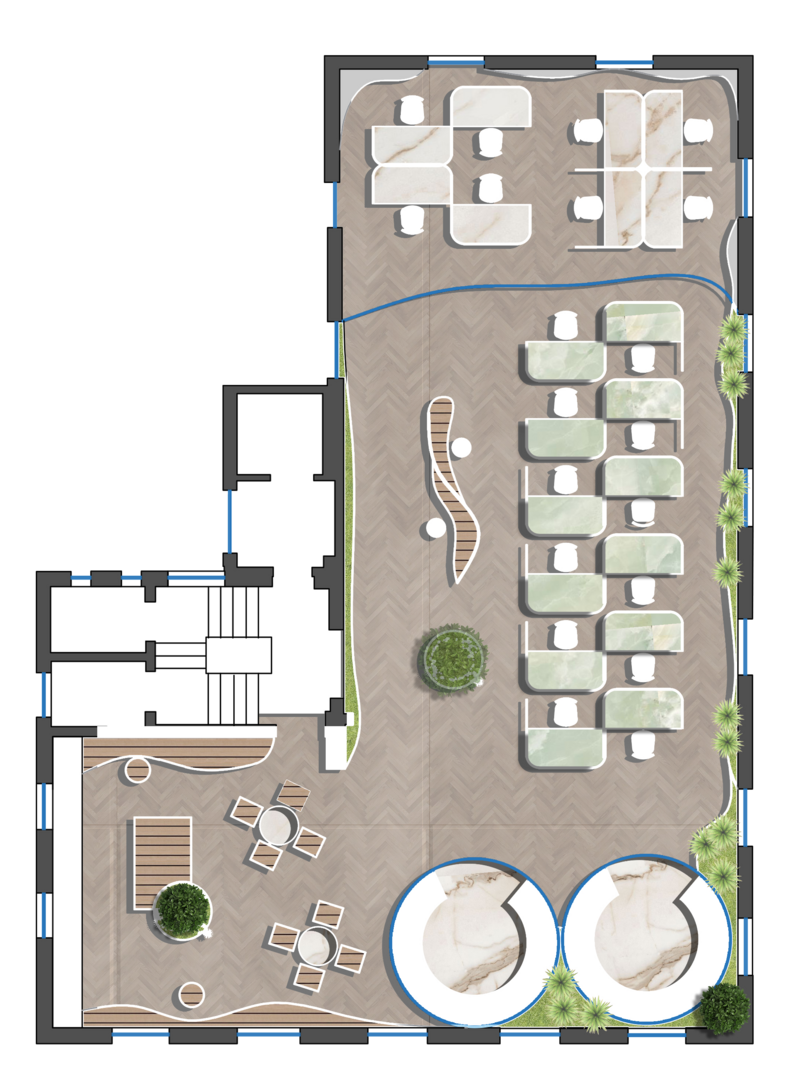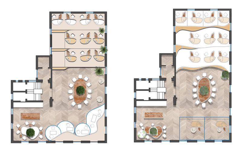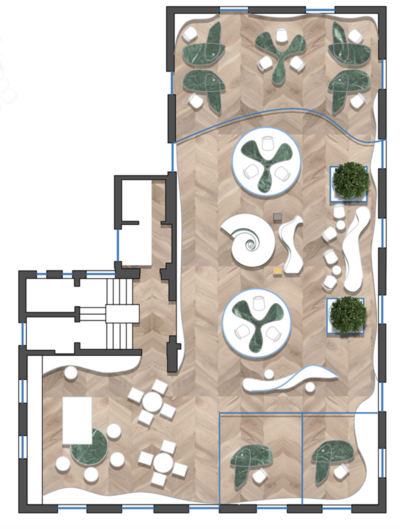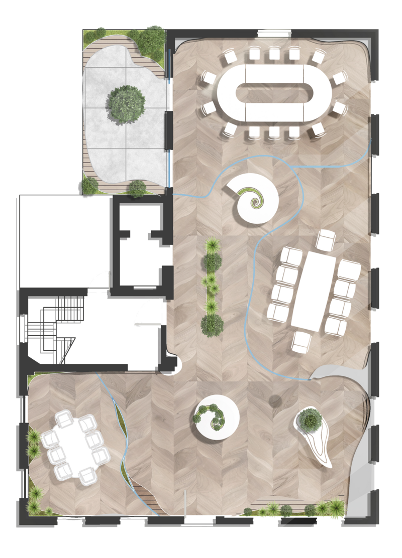 This captivating environment seamlessly blends innovation and elegance, inviting you to embark on a journey of creativity and collaboration. With its curvy furniture and open design, this space is designed to inspire and ignite the spark of innovation.